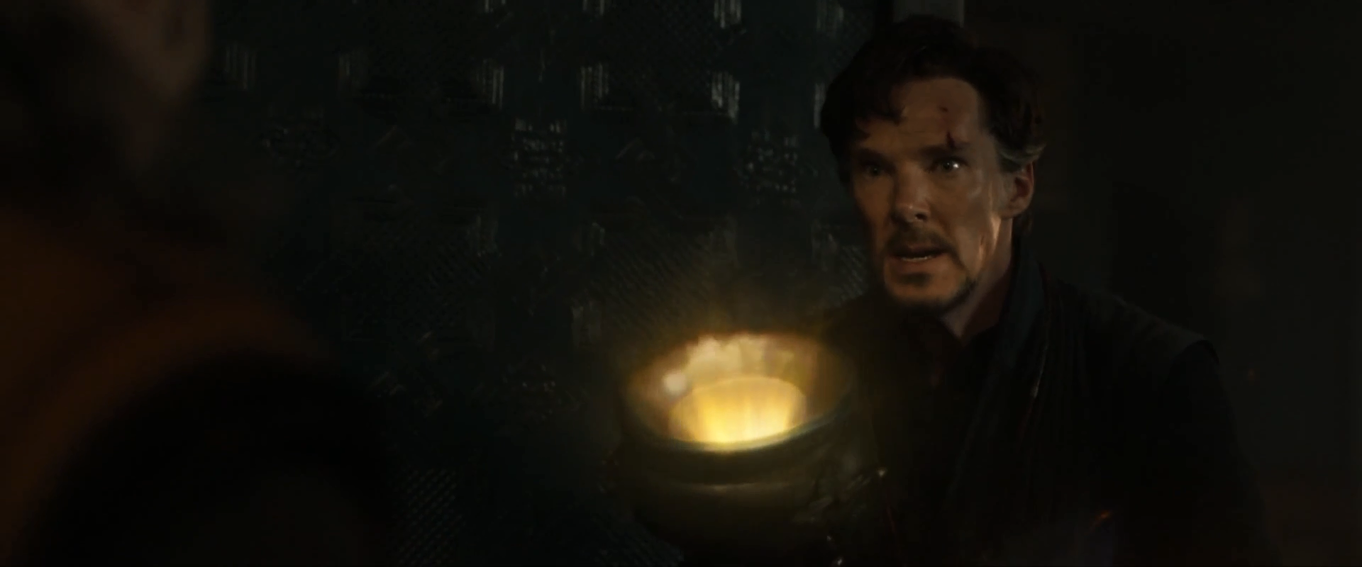 В Тёмном измерении Доктор Стрэндж призвал цепочку времени у себя на руке, а также столкнулся с Дормамму, заявив, что он пришел к нему, чтобы договориться. Дормамму проигнорировал предложение Стрэнджа и быстро убил его. Внезапно время повернуло обратно в тот момент, когда Доктор призвал цепочку времени у себя на руке, и он снова появился и повторил те же слова, что и раньше. Озадаченный Дормамму потребовал узнать, что происходит, а Стрэндж объяснил, что он использовал силу Око Агамотто, чтобы создать бесконечную петлю времени, тем самым заперев себя и Дормамму в один и тот же момент, повторяя цикл навсегда, пока последний не смягчится и не прислушается к его сделке.