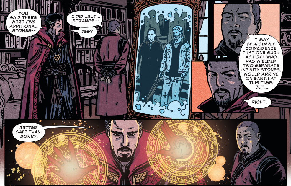 Доктор переместил Трикстера обратно в земное измерение. Локи был в ярости после бесконечного падения, которое длилось тридцать минут и попытался напасть на Стрэнджа, однако он устал от асов и, бесцеремонно кинул их в портал, в результате чего те оказались в Норвегии. Затем, Стефан вернулся к своему предыдущему разговору с Вонгом, чтобы узнать о последнем камне бесконечности; к сожалению, Вонг знает только название — Камень Души, который имеет потенциал быть самым опасным из всех.