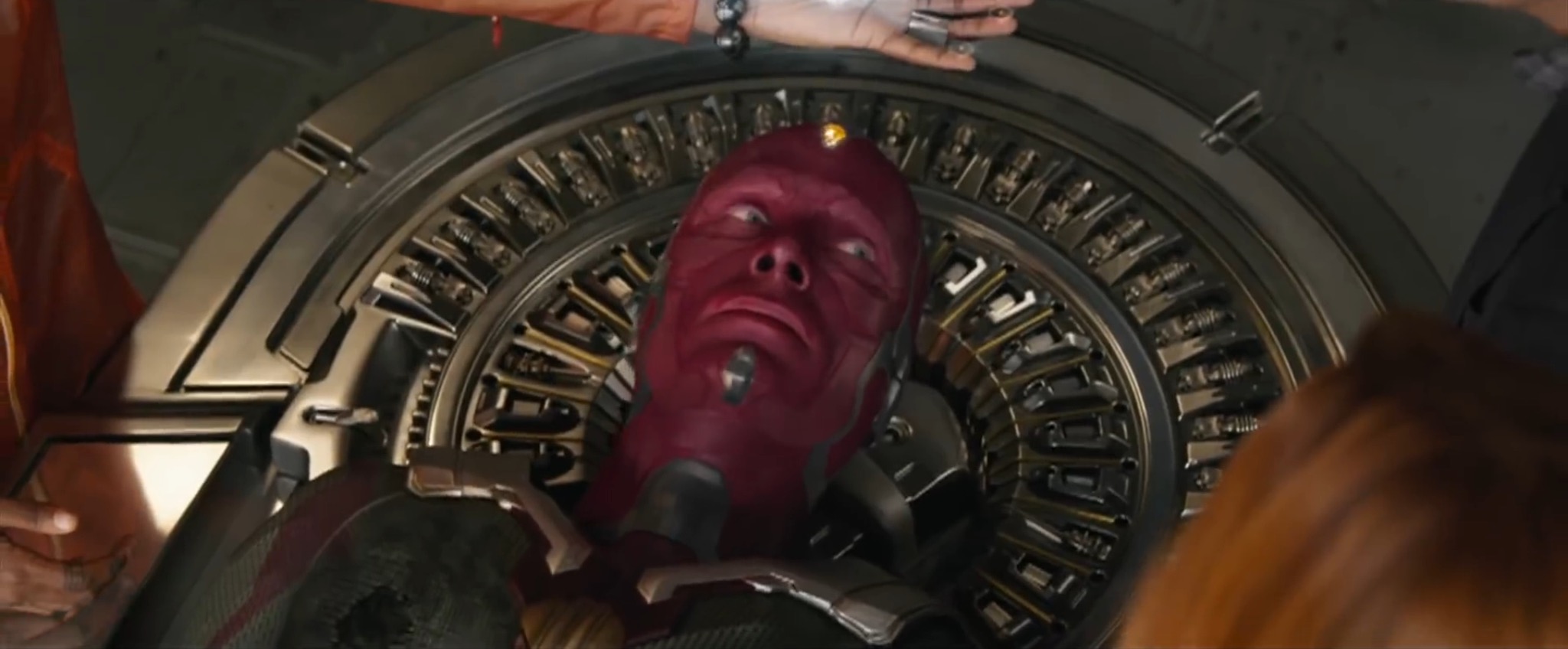 Брюс Беннер предложил выход. По его мнению, интеллект Вижена стал очень развитым, и состоял он не только из камня разума, но и из Д.Ж.А.Р.В.И.С.а, Альтрона, Тони, да и самого Беннера. А потому если извлечь камень аккуратно, большая часть Вижена останется. Беннер сообщил, что сам не может произвести такие тонкие манипуляции, но знает того, кто может. Герои направились в Ваканду.