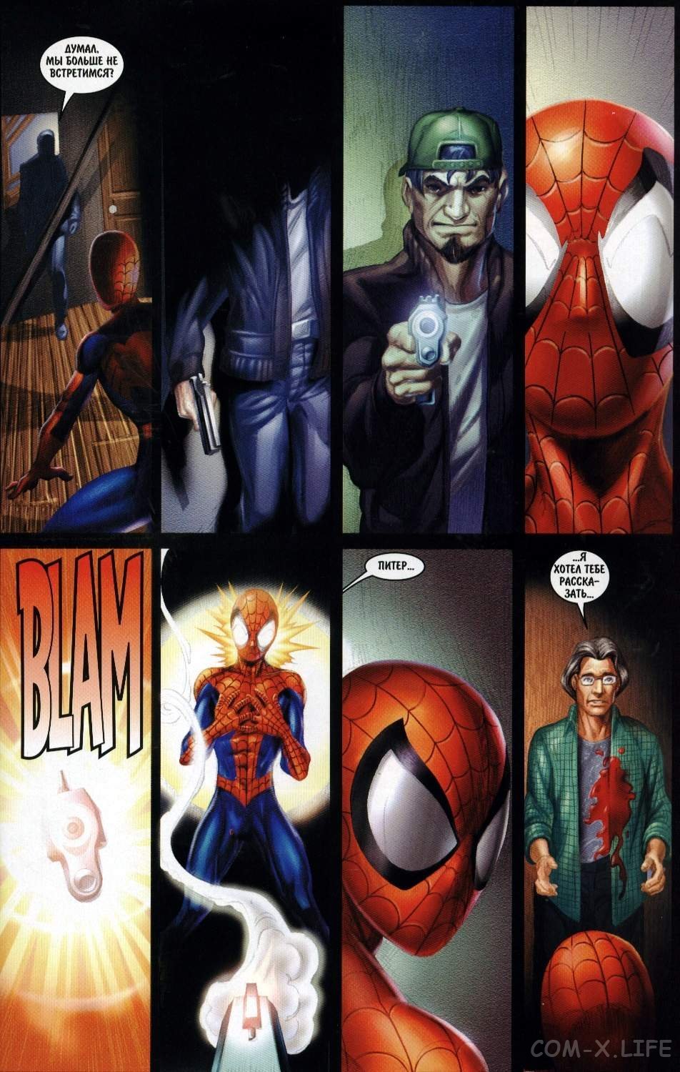 Войдя в дом от своей тёти и полицейских он узнаёт, что дядю Бена убил преступник, ворвавшийся в дом с целью ограбить его. Услышав разговор полицейских по рации о том, что вор находится на складе, Питер надел костюм Человека-паука и решил покарать бандита. На складе Человек-паук обезвредил преступника и был в ужасе, поскольку это был тот самый человек, которого он не остановил пару дней назад. После того, как Человек-паук передал грабителя полиции, его начала мучить совесть. По пути домой он встречает Мэри Джейн, которая соболезнует своему другу и говорит, что её родители попросили привести его в гости.