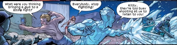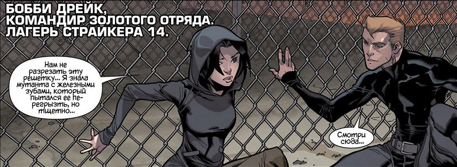 Трое друзей находят Шельму и вступают в схватку с Нимродами, но те были слишком сильны, так как на них не действовали способности мутантов. Бобби ранен, и Джонни уносит его. Мутанты перебираются в туннель Морлоков, где встречают ребенка-мутанта, который привел с собой раненого Джимми Хадсона; тот сбежал из лагеря Уильяма Страйкера, который был организатором охоты на мутантов. От Джимми ребята узнают о Страйкере и о плененных им мутантах; они решают выйти на поверхность, чтобы остановить его, однако Китти не собирается сражаться.